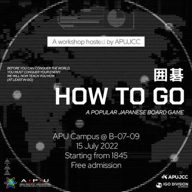 This workshop is already ended. Do join our weekly Igo session for more fun, we are always ready for game and teach you the basis :)#apujcc